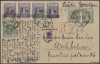 1920 kartka (na niemieckiej całostce użytej jako formularz) z Chojnic nadana 26.05.20 do Niemiec, opłata jak za list. | Fi.`86B, 89B, 90B, 91B |