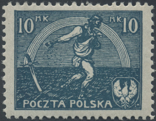 1921 siewca, znaczek w barwie zielonkawoniebieskiej na papierze v, ząbkowanie ZG12½, gwarancja i opis Walocha. | Fi.125I Mi.158 |