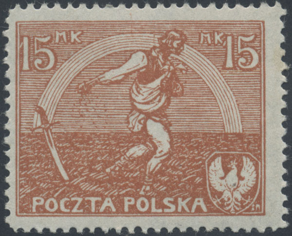 1921 siewca, znaczek w barwie jasnobrązowej na papierze m, ząbkowanie ZL11½, gwarancja i opis Walocha. | Fi.126c Mi.159 |