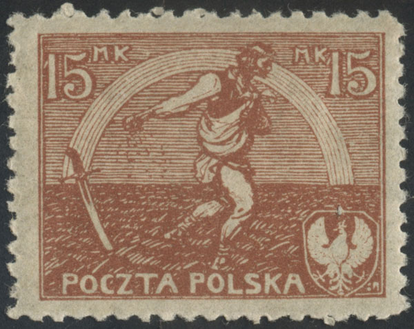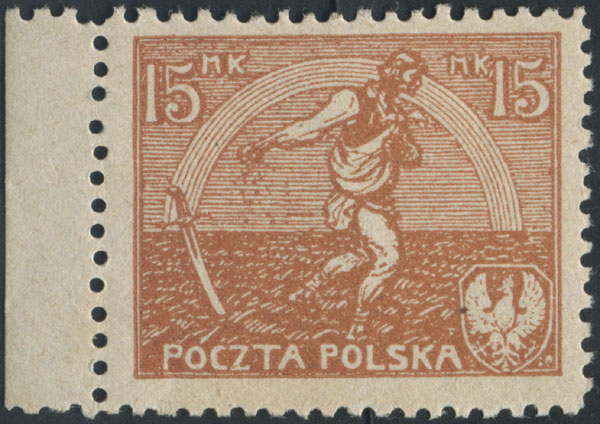 1921 siewca, znaczek w barwie żółtobrązowej, gwarancja i opis Walocha. | Fi.126a Mi.159 |