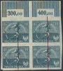 1921 duży orzeł na tarczy barokowej, czworoblok bez gumy z pustopolami na górnym marginesie.Wysoka wycena Fischera. | Fi.136 Mi.172 |