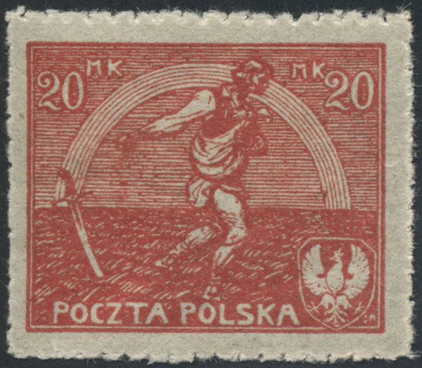 1921 siewca, znaczek w barwie czerwonej na papierze r, ząbkowanie ZL11½, gwarancja i opis Walocha. | Fi.127I Mi.160 |