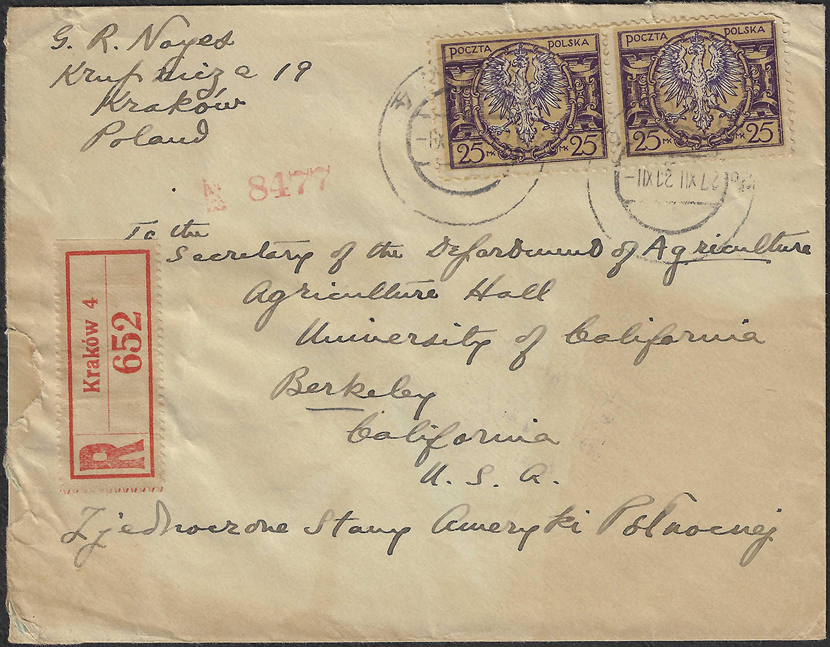 1921 list polecony z Krakowa do Stanów Zjednoczonych, czerwona erka Kraków 14, na odwrocie stempel odbiorczy. | Fi.135 |
