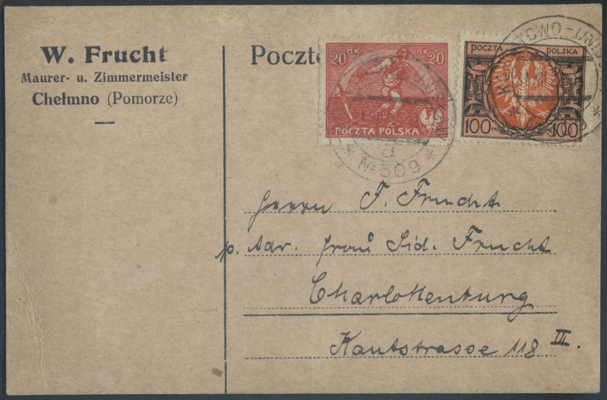 1922 kartka z Chełmno Pomorze nadana w ambulansie pocztowym na lokalnej trasie Kornatowo - Unisław nr 509, kasownik z wyróżnikiem a. | Fi.127, 137 |