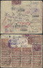 1923 duży orzeł na tarczy barokowej, frankatura trójkolorowa, zagraniczny ekspresowy list polecony wysłany 18.IX z Łodzi do Stentsch w Niemczech (obecnie Szczaniec woj.lubuskie), dosłany do Schweibus (Świebodzin); dekoracyjna całość w bardzo dobrym stanie zachowania. | Fi.138, 139, 142 Mi.174, 177, 180 |