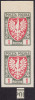 1919 wydanie Komisji Rządzącej, pionowa parka znaczków za 1 kr., dolny z niekatalogowanym błędem "uszkodzona litera O w POLSKA", dodatkowo na obu lekkie przesunięcie koloru czerwonego w prawo, gwarancja Berbeka. | Fi.65 B Mi.64 |