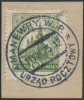 1925 "MANEWRY W.P. URZĄD POCZTOWY", znaczek na wycinku stemplowany w czasie trwania na Wołyniu I fazy manewrów w dniach 9-14.07.25, dla zaproszonych gości w specjalnym pociągu zainstalowano urząd pocztowy, który stosował ten datownik (Myślicki 25 002). | Fi.208 |