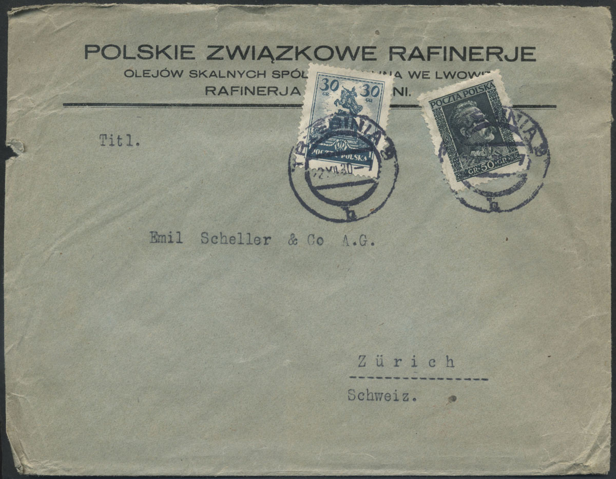 1925 list firmowy Rafineria w Trzebini do Szwajcarii. | Fi.213, 238 |