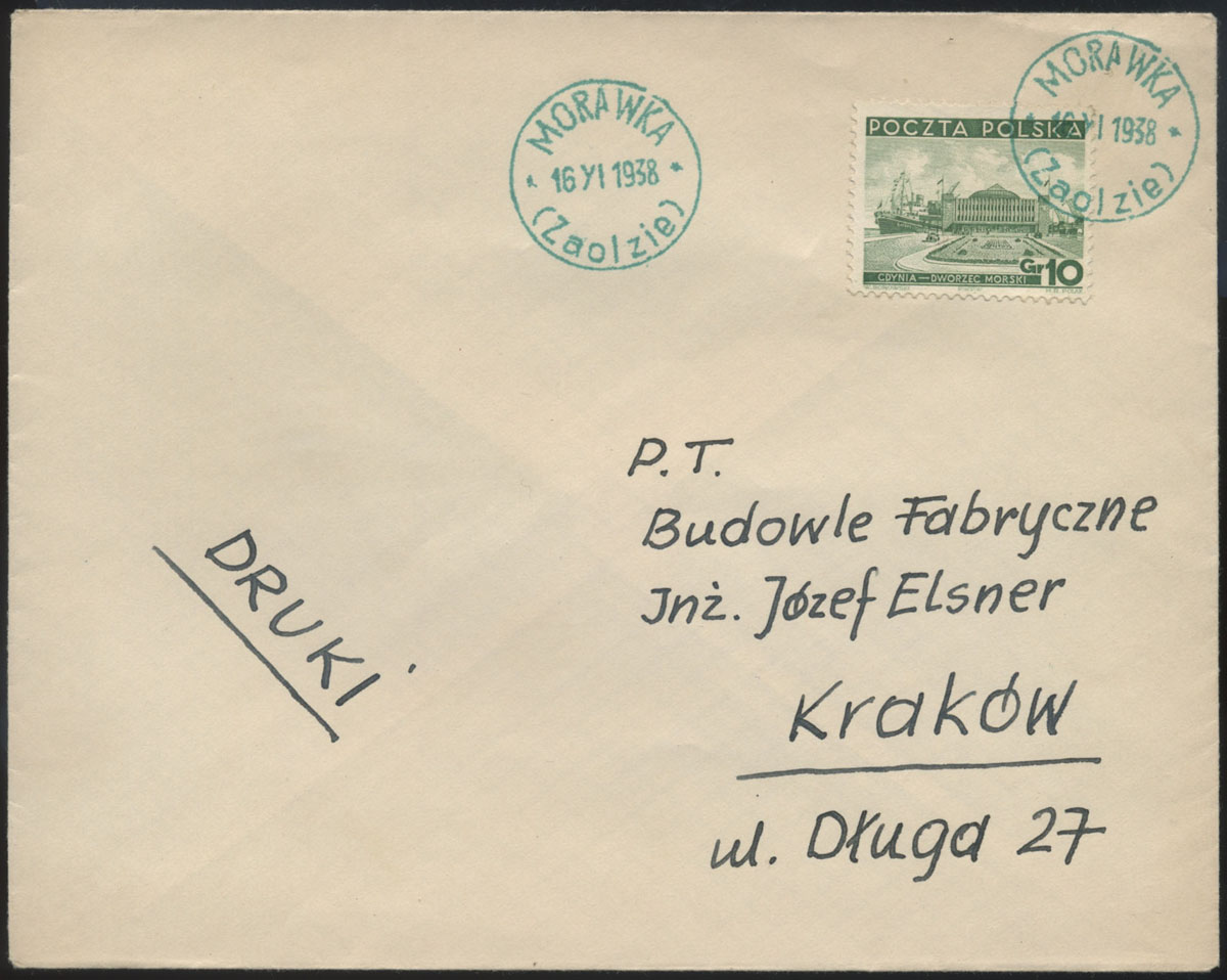 1938 Polska okupacja Zaolzia, stempel upt. Morawka odbity na kopercie zaadresowanej do Krakowa. | Fi.295 |