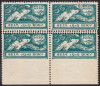 1919 I Polska Wystawa Marek, czworoblok znaczków za 50+5 fen. z przesuniętym w lewo ząbkowaniem pionowym pomiędzy znaczkami z dziewiątej i dziesiątej kolumny arkusza - znaczki po lewej są wąskie, a skrajne szerokie, różnica to dwie dziurki, podobny błąd przesunięcie ząbkowania poziomego Fi.180.- za sztukę, każdy egzemplarz gwarancja Walocha. | Fi.106B Mi.122A |