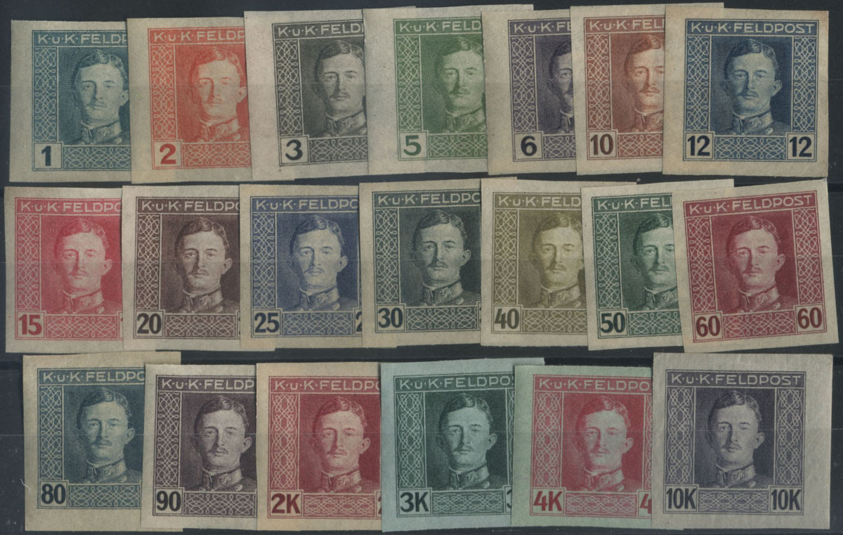 1918 seria austriackiej poczty polowej z portretem cesarza Karola nie wprowadzona do obiegu, seria w bardzo ładnym stanie. | 3 950 PLN | 3 950 PLN | |