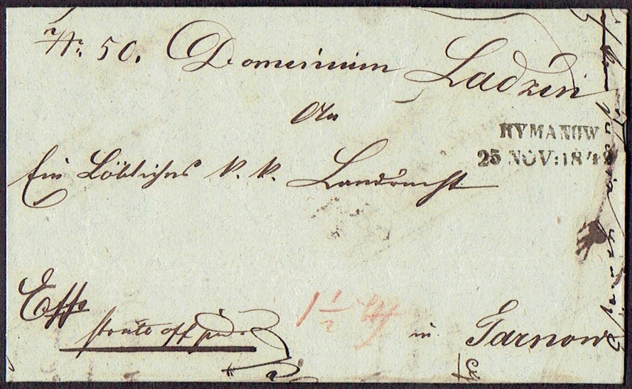 1849 Rymanów, kompletny list składany wysłany z Rymanowa do Tarnowa. | |