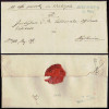 1850 około, kompletny składany list z urzędu celnego w Praszce zamknięty pieczęcią lakową urzędu pocztowego do Piotrkowa, stempel Praszki typ VIIIA, stempel tranzytowy z Sieradza typu IIIC na odwrocie. | |