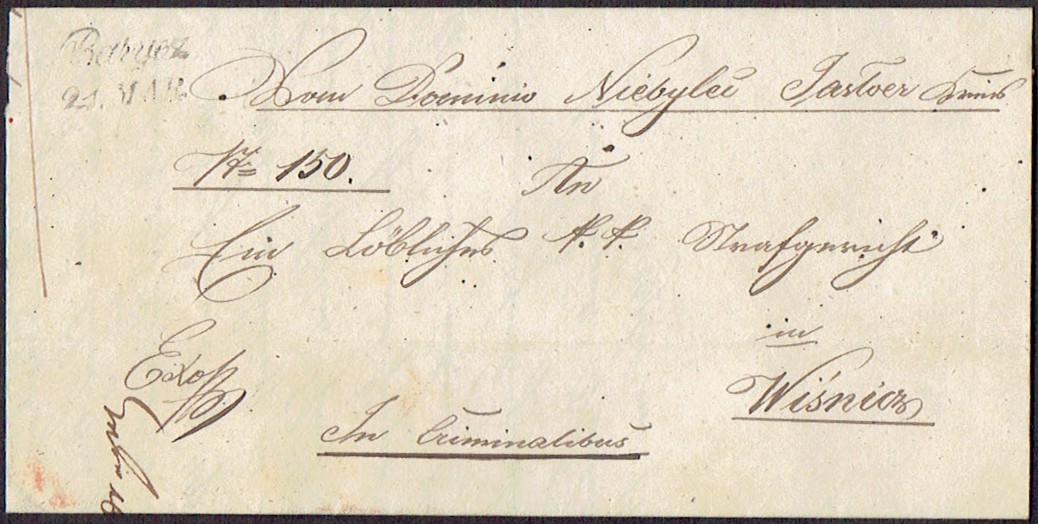1847 Wisznicz, kompletny list składany wysłany z Wisznicza. | |