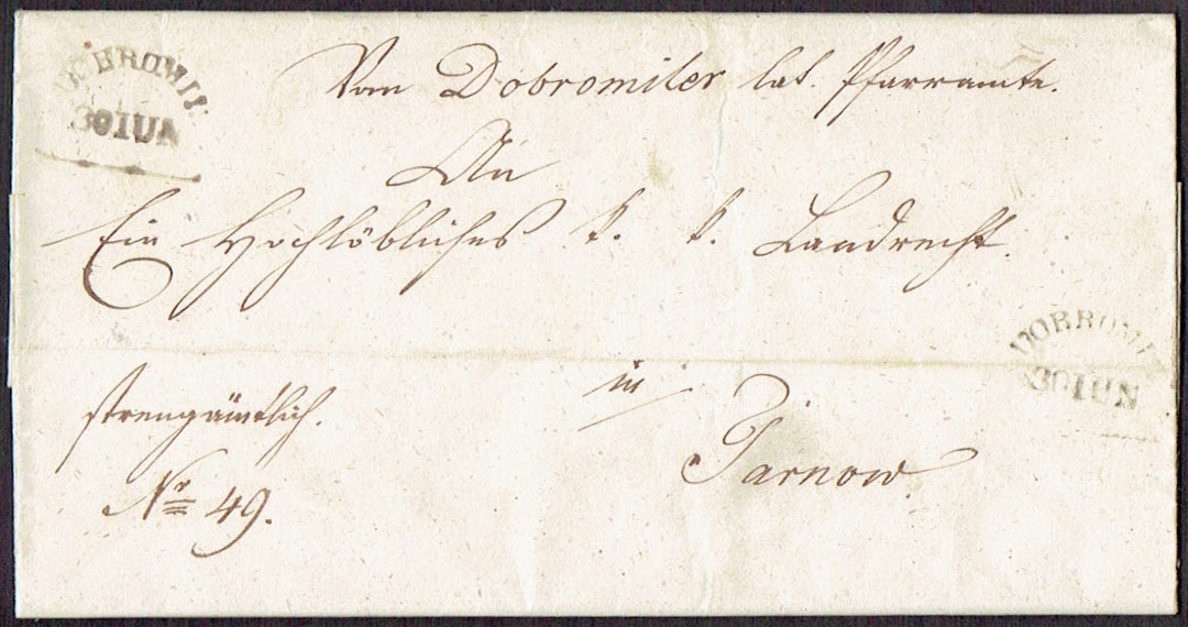 1849 Dobromil, kompletny list składany wysłany z Dobromila do Tarnowa. | |
