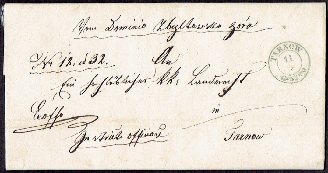 1847 PODGÓRZE - kompletny list urzędowy wysłany ze zbiornicy listów w Podgórzu do Przeworska, zielonkawy dwuwierszowy z datą stempel nadawczy Podgorze 25 JUL, na odwrocie czarny dwuwierszowy stempel odbiorczy PRZEWORSK z tego samego dnia i zalepka nadawcy; dobry stan zachowania. | |