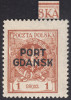 1926 Port Gdańsk, znaczek z niskim nadrukiem, gwarancja i opis Schmutz. | Fi.12aIx |
