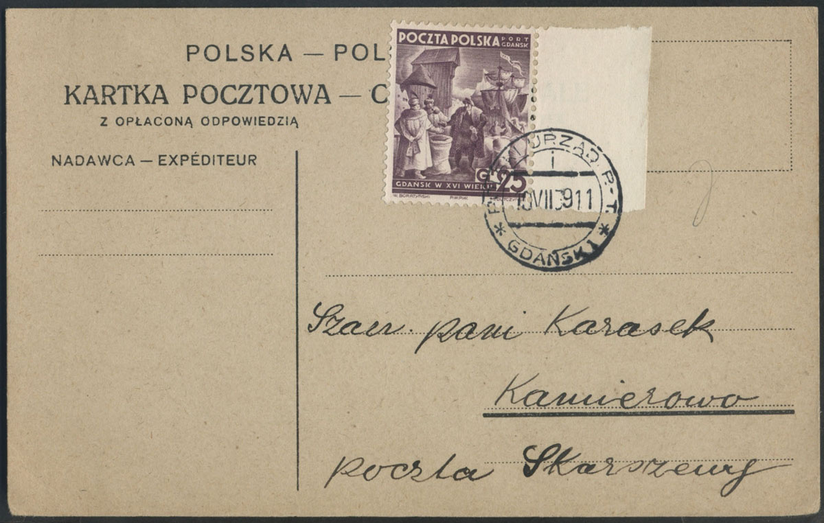 1939 Port Gdańsk, kartka bez treści adresowana do Kamierowa. | Fi.33 |