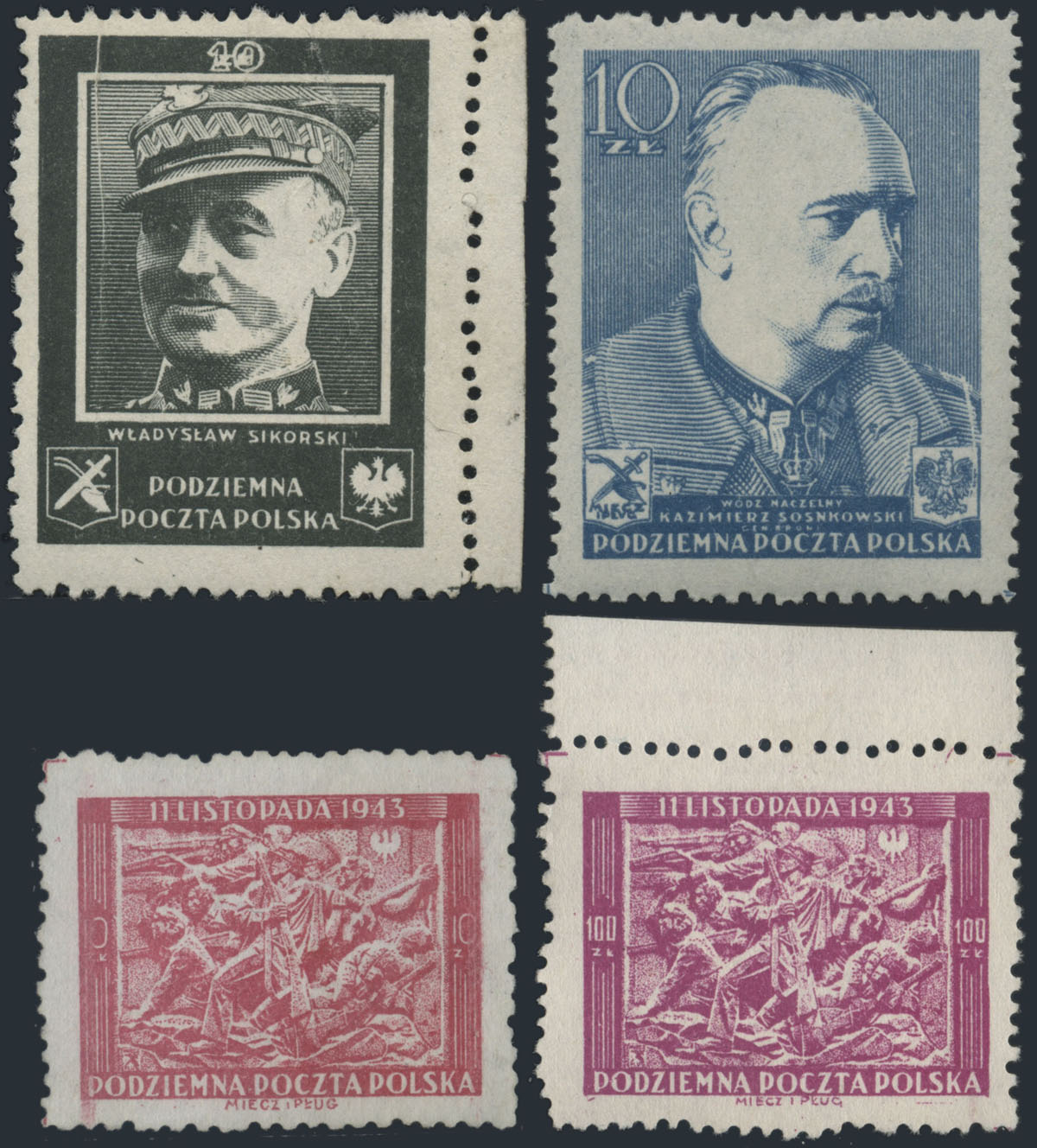 1943 Tajna Poczta Polska, seria drugiego wydania, ostatni znaczek w serii niegumowany. | Fi.10-3 |