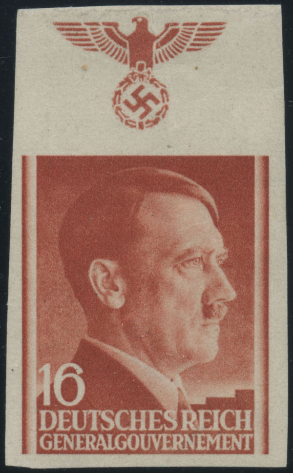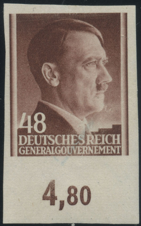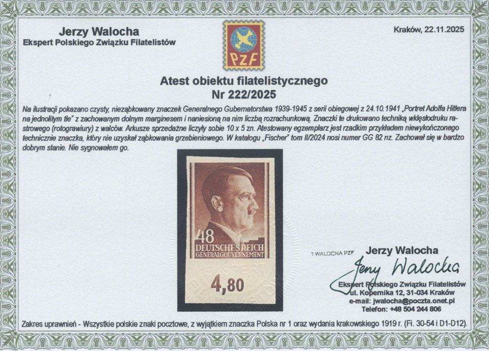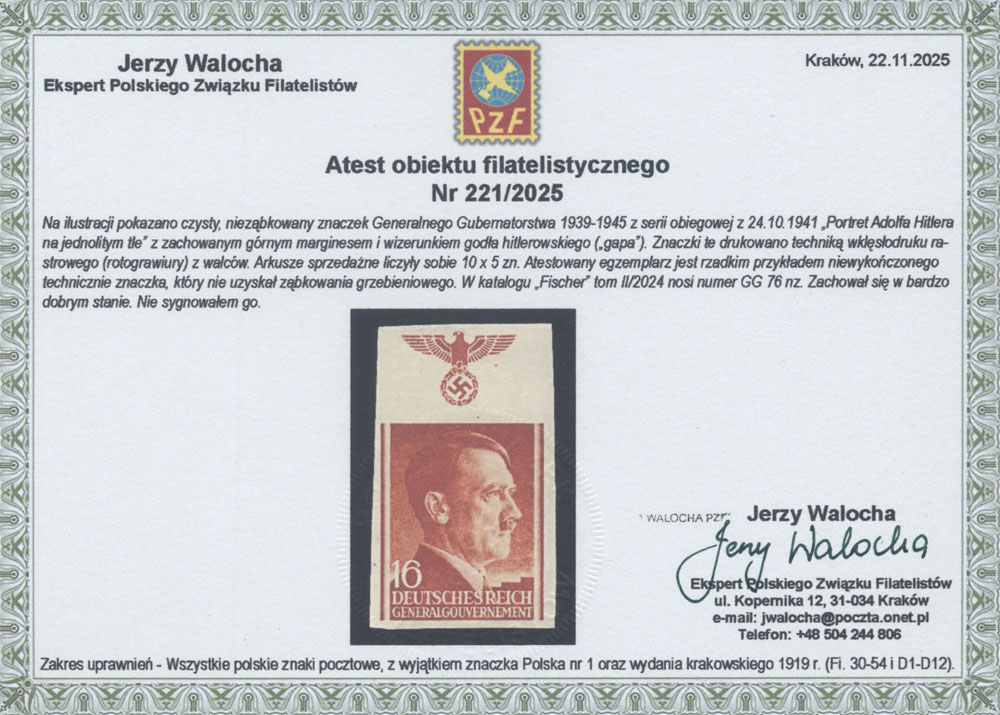 1941 portret A.Hitlera, znaczek nieząbkowany, fotoatest Walocha. | Fi.76nz |
