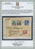 1942 "Am Schalter eingeliefert Behördl. Ausweis lag vor Postamt Dabrowa b/Tarnow" w wolnym tłumaczeniu "Dostarczono do okienka urzędu. Okazano dowód tożsamości. Urząd Pocztowy Dąbrowa k/Tarnowa" niezwykle rzadki stempel urzędu pocztowego Dąbrowa k.Tarnowa, dokumentujący, objętą specjalną procedurą, wysyłkę zagraniczną poza Rzeszę i kraje okupowane, czy sprzymierzone; list polecony wysłany z agencji w miejscowości Otfinów do obozu internowania Uitikon w Szwajcarii, czerwony trzywierszowy ramkowy stempelek agencji "Otfinow über Dombrowa b.Tarnow (Distr.Krakau)", znaczki skasowano 8.V w Dąbrowie i doklejono nalepkę polecenia; zalepki cenzury niemieckiej, stempelki cenzorskie, w tym szwajcarski 380, kompletna tzw. kartka kierunkowa, stempelek "Zuzustellen Feldpostdirektion"; bardzo rzadki walor w słabszym stanie zachowania (usunięto fragment tylnej klapy). | Fi.42, 51 |