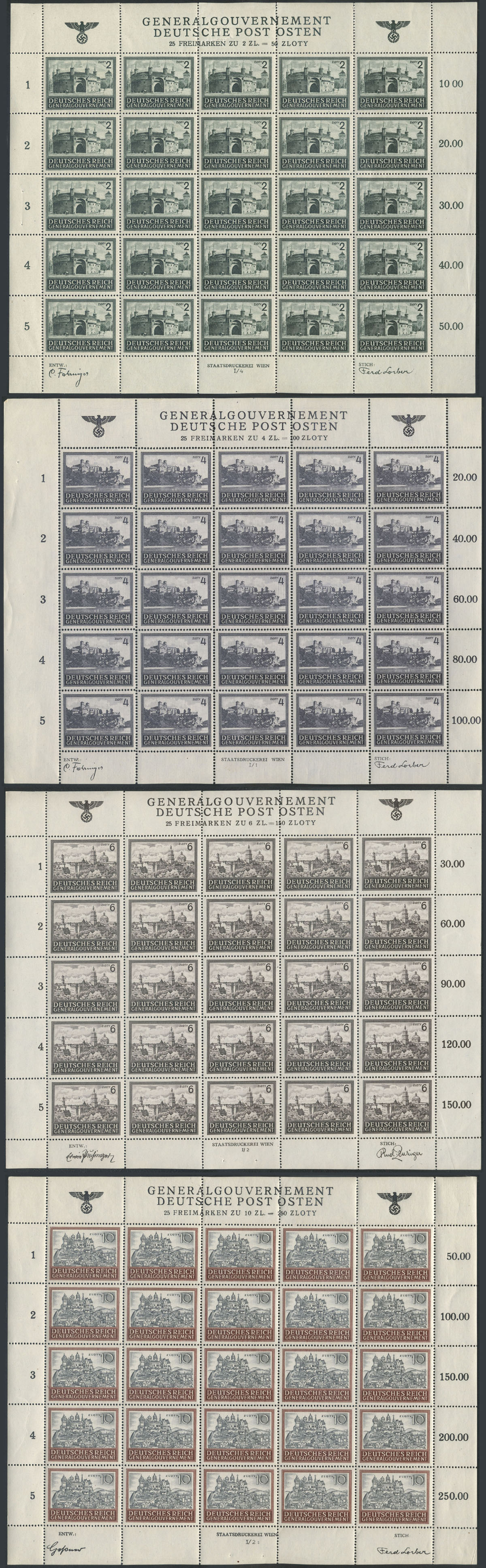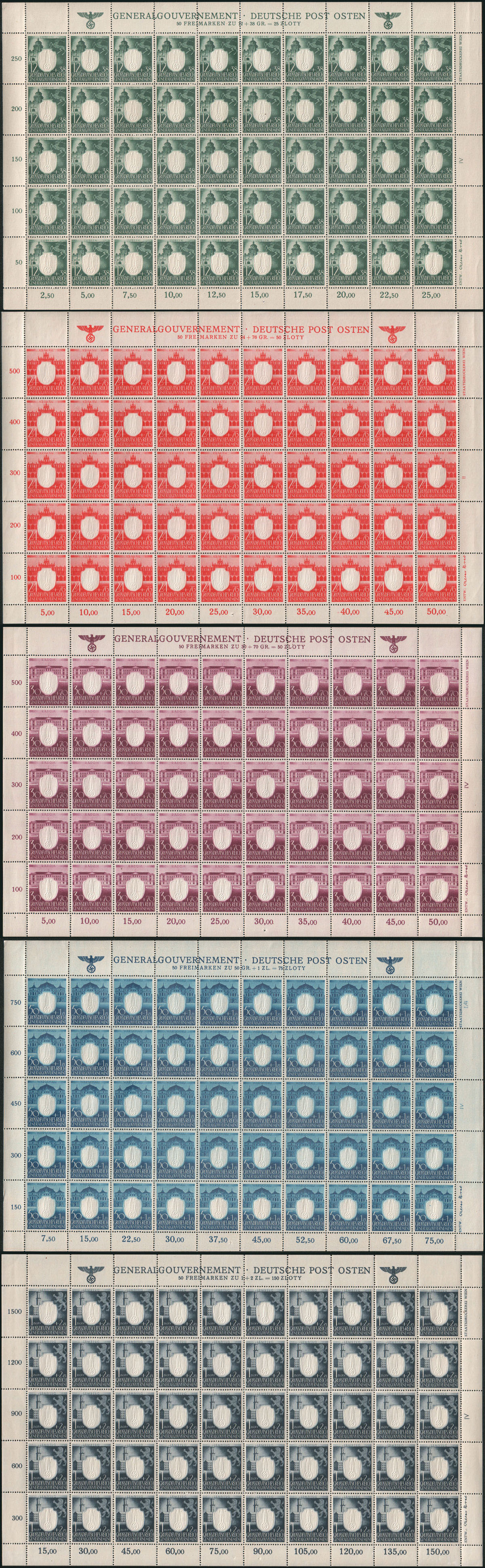 1943 3. rocznica NSDAP w generalnym Gubernatorstwie, seria w arkusza sprzedażnych w bardzo dobrym stanie. | Fi.105-9 ark. |