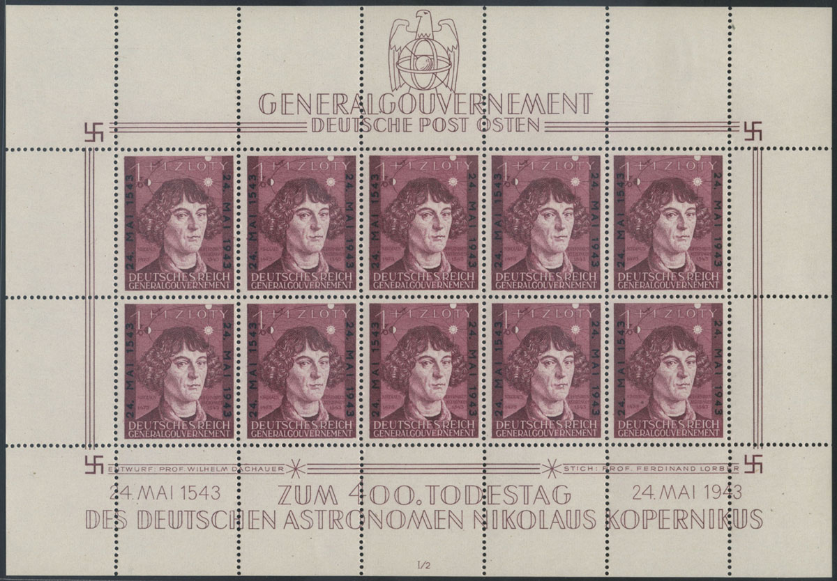 1943 400. rocznica urodzin Mikołaja Kopernika, ozdobny arkusz z numerem II/1. | Fi.104I ark. |