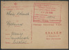 1939 (?) Stalag XIIB - formularz ewidencyjny Niemieckiego Czerwonego Krzyża o numerze 241607, odcinek 2 wysłany do Krakowa, stempelek cenzora obozowego nr.10; rzadki walor w dobrym stanie zachowania. W niektórych obozach zawiadamianie rodzin o pobycie jeńca w niewoli odbywało się za pośrednictwem Niemieckiego Czerwonego Krzyża (DRK), jeniec otrzymywał specjalny czteroczęściowy formularz, z którego po rozdzieleniu każda część stanowiła rodzaj karty pocztowej służącej do: 1 - założenia kartoteki jeńca w DRK, 2 - korespondencji jeńca z rodziną (zawiadomienie o pobycie jeńca w niewoli), 3 - odpowiedzi rodzinie do jeńca, 4 - uzupełnienia informacji o rodzinie jeńca przesyłanej do DRK w Berlinie; jeniec wypełniał odpowiednie rubryki w częściach 1, 2, 3, a całość zwracał do komendy obozu, która odcinek 1 odsyłała bezpośrednio do DRK, odcinki 2, 3, 4 wysyłano razem do rodziny jeńca, która na części 3 odpowiadała jeńcowi, a 4 część wypełniała i zwracała urzędom niemieckim, które przesyłały ją do DRK w Berlinie. | |