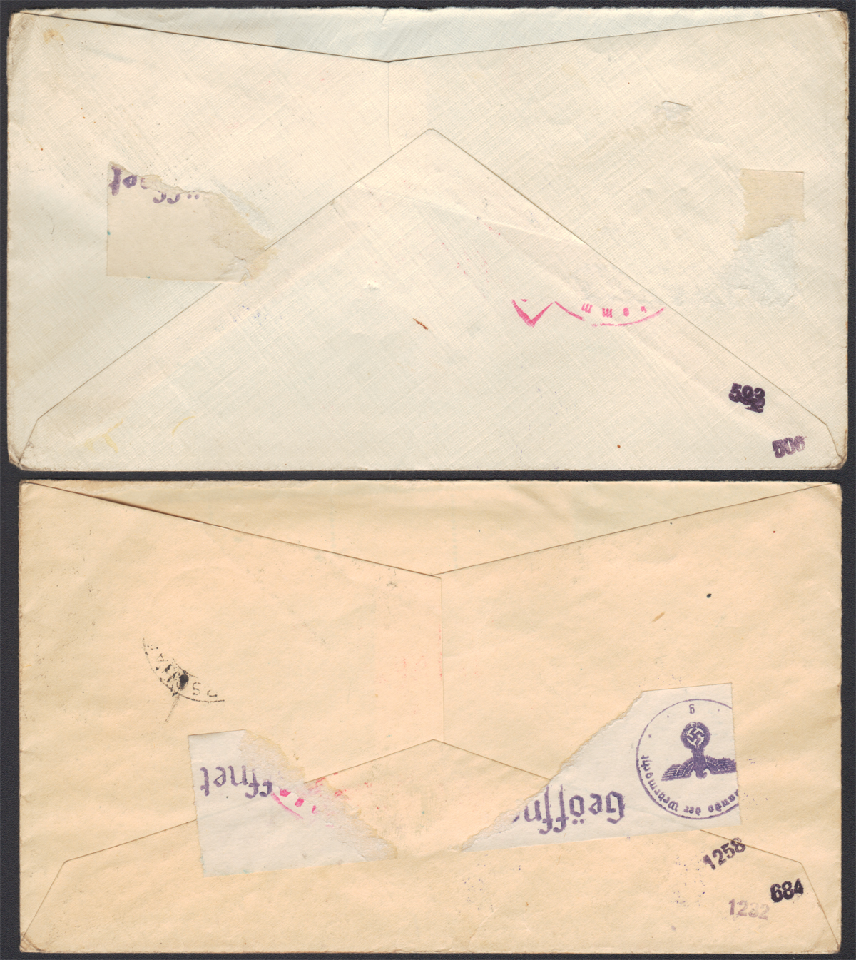 1940 korespondencja polskiego żołnierza internowanego w Szwajcarii w obozie w Aegerten - Studen do Berna, stempelek cenzury i poselstwa R.P. w Bernie. | |