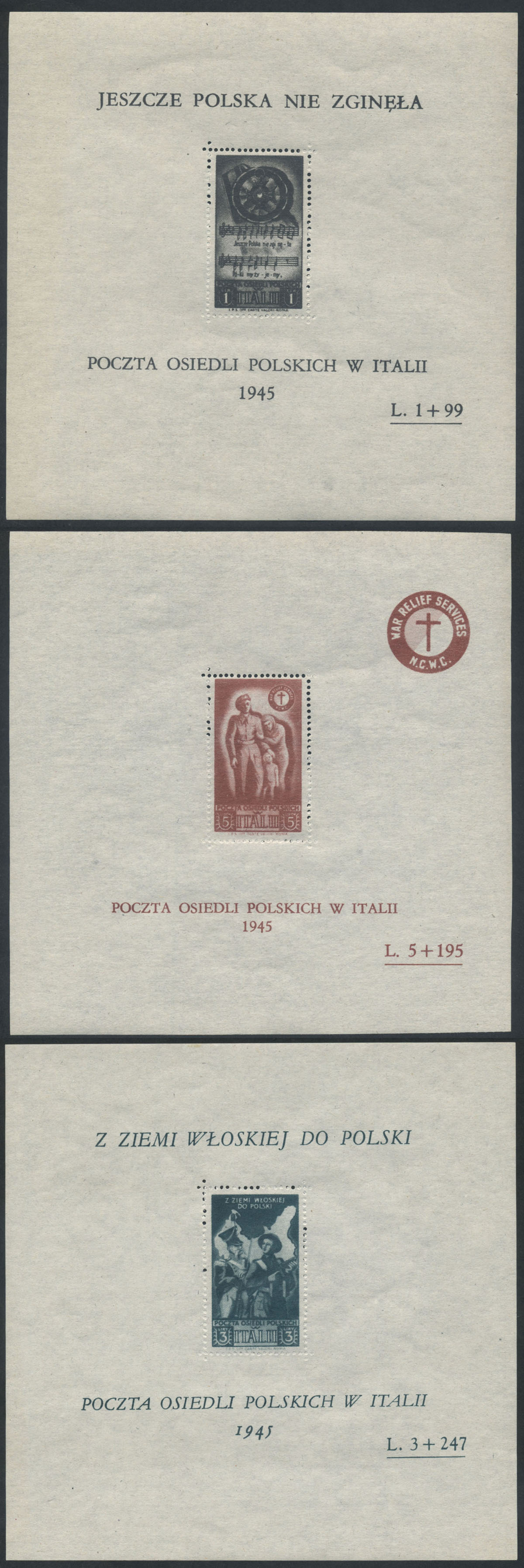 1946 Poczta osiedli polskich we Włoszech, komplet bloków czystych, bardzo dobry stan zachowania, gwarancja. | Fi.bl.1-3 |