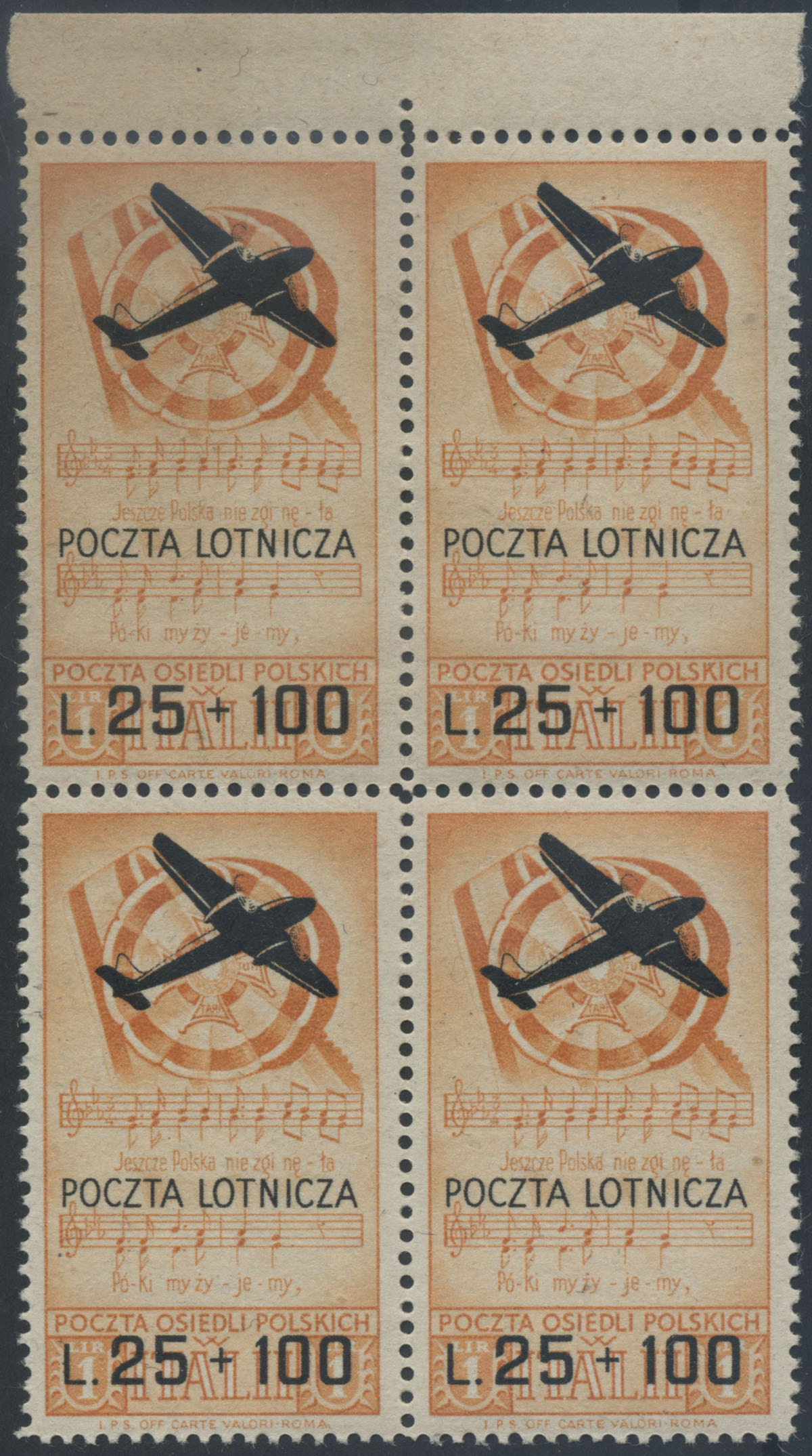 1946 czworoblok znaczka na przesyłki lotnicze wydania dla poczty polskich osiedli we Włoszech. | Fi.10B |