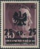 1944 Niezabitów, znaczek z nadrukiem nowego nominału 25 gr. zamiast 50 gr., prawdopodobnie próbna odbitka znaczków tego wydania, nakład nie ustalony prawdopodobnie pojedyncze sztuki, fotoatest Walocha. | Fi.24P |