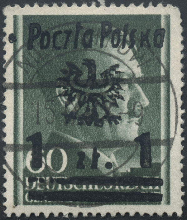 1944 Niezabitów - wydanie prowizoryczne, znaczek za 1 zł./60 gr. z nadrukiem stempelkiem metalowym "Poczta Polska / Orzeł / 1 zł. 1 / belki" Nakład 710 szt.), gwarancja Krawczyk. | Fi.20 |
