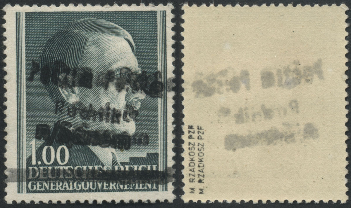 1944 Rudnik nad Sanem, znaczek z nadrukiem lokalnym typ IV, nakład niewielki nieznany, gwarancja Mikstein, fotoatest. | Fi.24IV |