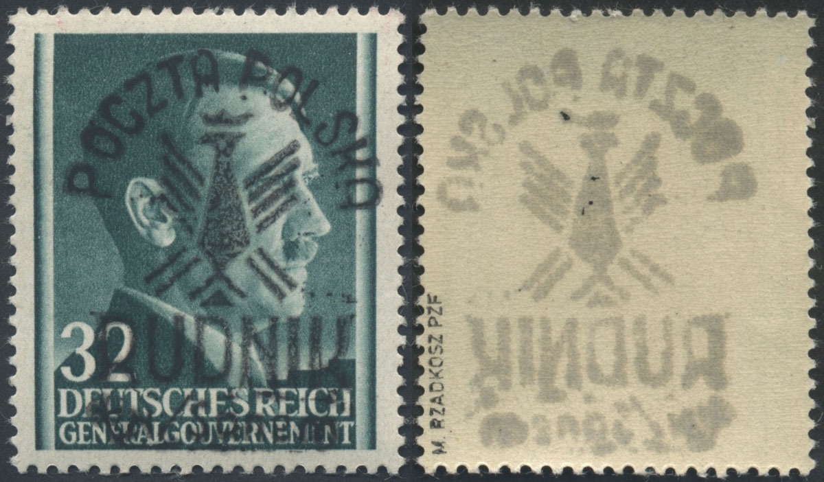 1944 Rudnik nad Sanem, znaczek urzędowy z nadrukiem lokalnym typ II, minimalny nieznany nakład - kilka sztuk, fotoatest. | Fi.31II |