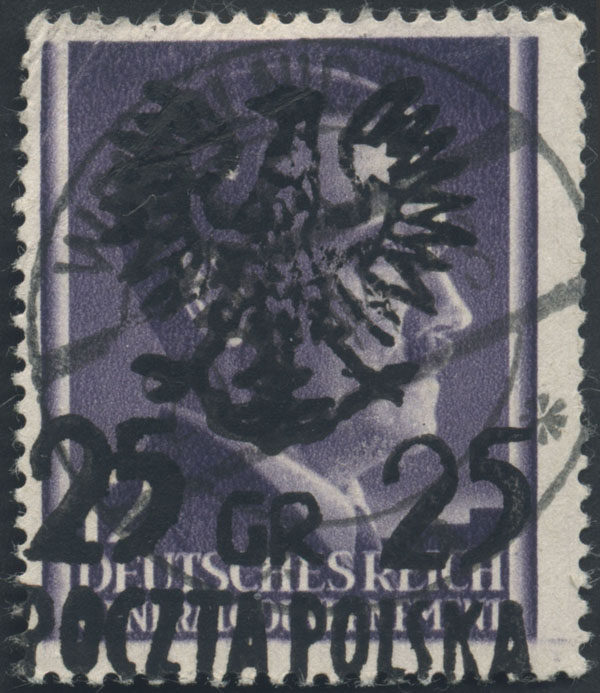 1944 Rudnik nad Sanem, znaczek z nadrukiem lokalnym typ IV, minimalny nieznany nakład - kilka sztuk, fotoatest. | Fi.25IV |