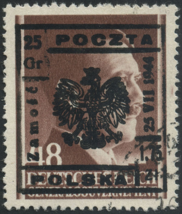 1944 Zamość, znaczek z nadrukiem lokalnym, gwarancja Walocha. | Fi.5 |