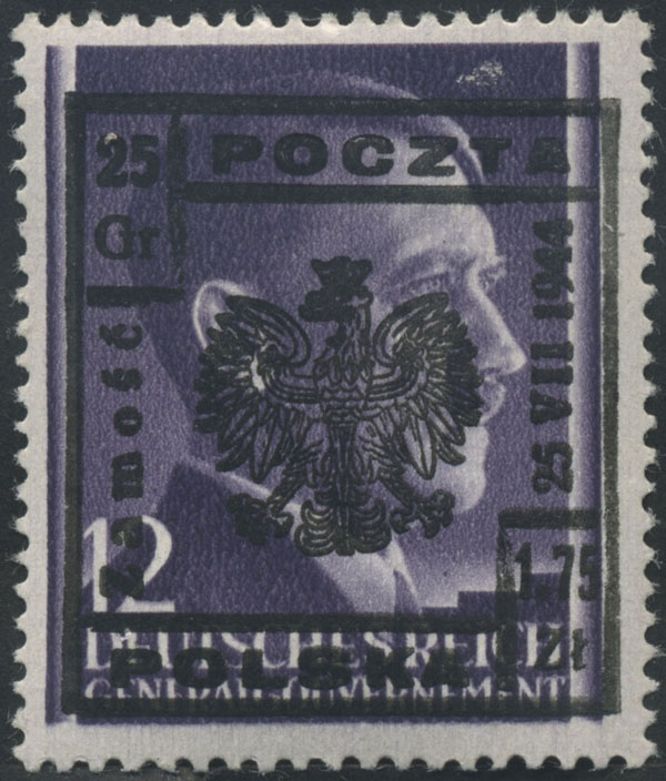 1944 Wąwolnica, znaczek z nadrukiem lokalnym typ V o nakładzie 273 sztuki, gwarancja Walocha. | Fi.22 |