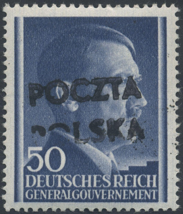 1945 Końskie, znaczek z nadrukiem lokalnym, gwarancja Rzadkosz. | Fi.6 |