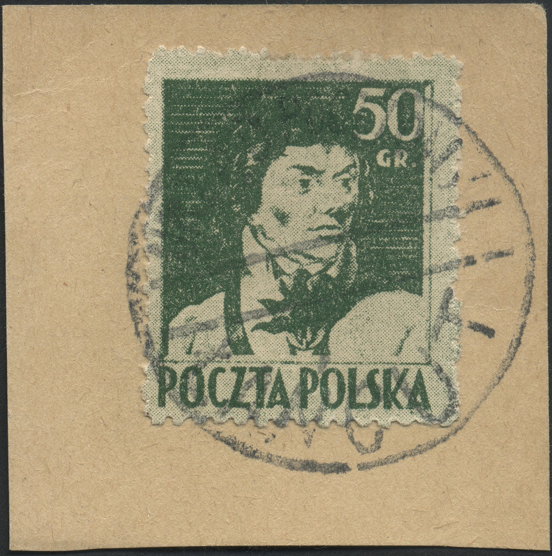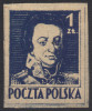 1944 Wodzowie - T.Kościuszko, znaczek za 50 gr., znaczek w kolorze jasnozielonym z błędem na poz.19 "zniekształcenia dolnych liter", gwarancja i opis. | Fi.340a B3 Mi.381 |