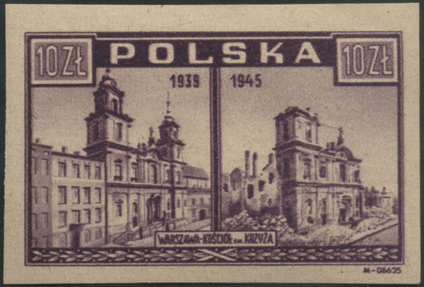 1945 Warszawa oskarża, znaczek w barwie szarofioletowej na papierze y5, gwarancja i opis Walocha. | Fi.385e Mi.419 |