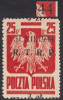 1944 P.K.W.N., znaczek za 2 zł./25 gr. poz.92, rzadki z silnie przesuniętym w prawo nadrukiem, gwarancja z opisem walca (III) i pozycji każdego fragmentu nadruku (41 i 42) Walocha. | Fi.345 MK Mi.287 |