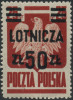 1947 przedrukowe wydani lotnicze, znaczek w barwie czerwonej z błędem "LOFNICZA", gwarancja i oznaczenie. | Fi.442aB1 Mi.477aI |