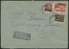 1950 "groszy" mieszana frankatura ze znaczkami w nowej walucie, znaczek z nadrukiem typu 26 na liście poleconym wysłanym 11.5.1951 z Jeleniej Góry do Wrocławia. | Fi.449, 533, 541 Mi.590, 671, 679 |