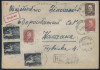 1950 groszy, ekspresowy list polecony z Szczecina 5 do Warszawy opłacony znaczkami z nadrukami groszy typ 21 w barwie fioletowej. | Fi.448, 520, 525 |