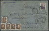 1950 groszy, list polecony z Zabrza 1 do Warszawy opłacony znaczkami z nadrukiem groszy typ 3 w barwie fioletowej. | Fi.473, 475, 526 Mi.624, 626, 658 |