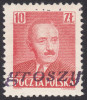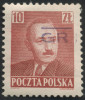 1950 "groszy - lokalny", Bielsko 2, Bierut, znaczek za 10 zł. z czarnym stempelkiem typu 28, na górnym marginesie nasunięty kawałek nadruku z górnego znaczka. | Fi.520 Mi.652 |