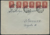 1951 groszy, list z poznania 2 do Warszawy opłacony znaczkami z nadrukiem groszy typ 17 w barwie czerwonej. | Fi.519, 532 Mi.650, 670 |