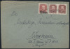 1951 groszy, list z Jeleniej Góry do Warszawy opłacony znaczkami z nadrukiem groszy typ 26 w barwie fioletowej. | Fi.520, 523 Mi.651, 655 |