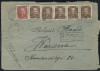 1951 groszy, list polecony z Tarnowa 2 do Warszawy opłacony znaczkami z nadrukami groszy typ 3 w barwie czerwonej. | Fi.520, 523 |